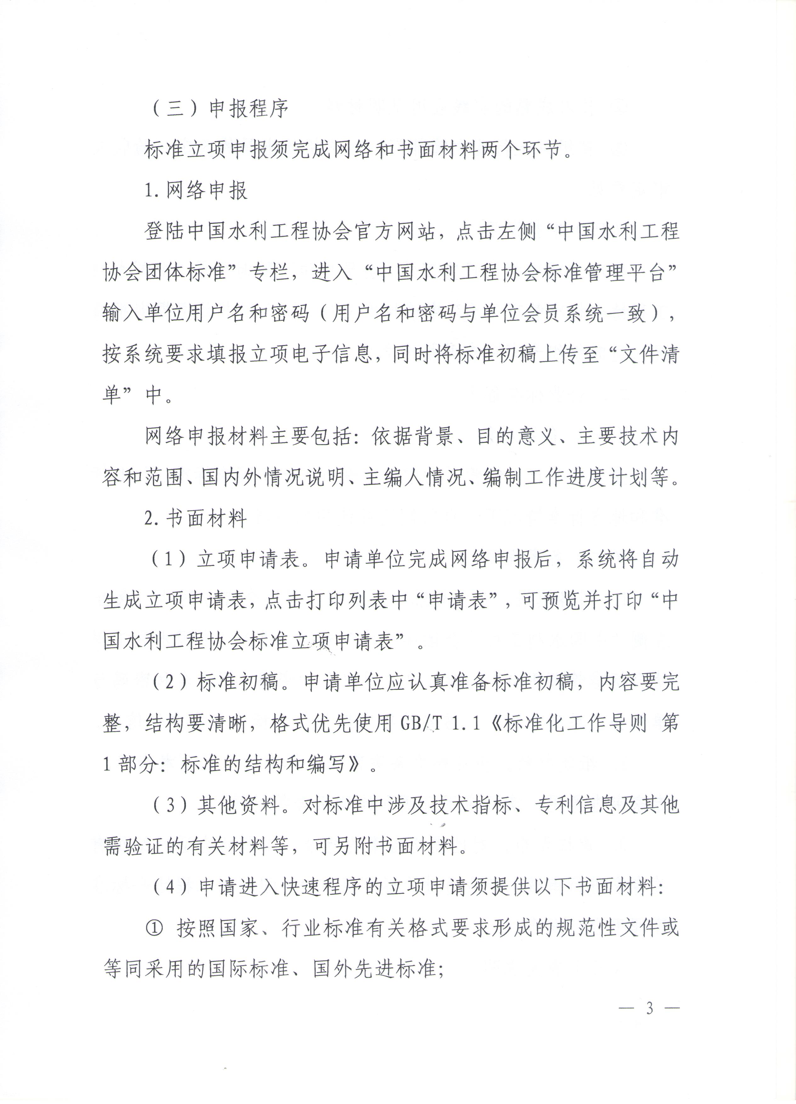 关于开展中国水利工程协会标准立项申报和企业标准备案工作的通知